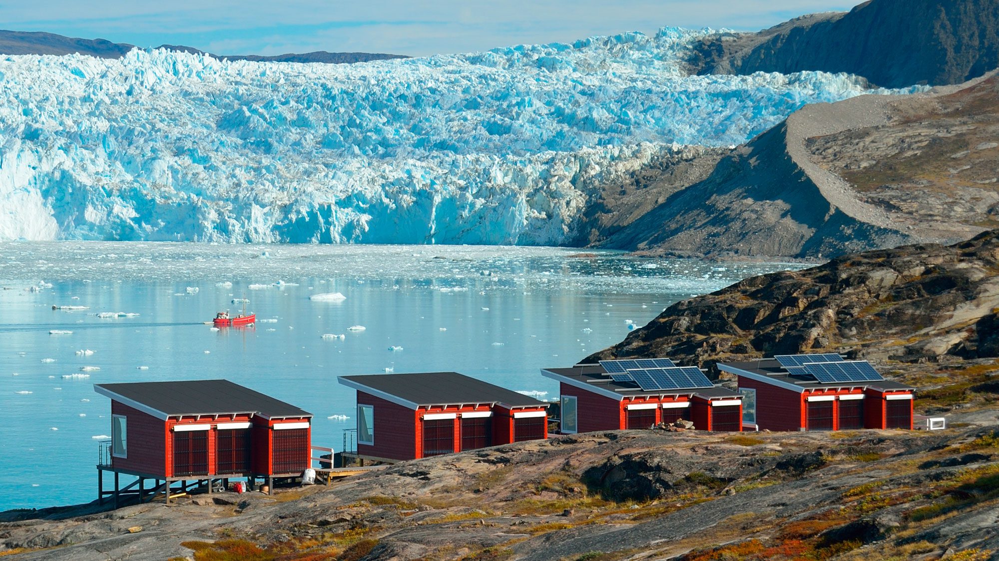 Il Glacier Lodge Eqi è composto da un affascinante insieme di cabine con viste eccezionali sul ghiacciaio attivo. Le sistemazioni sono accoglienti, in stile rustico con struttura in legno, e rappresentano una base ideale per relax e avventura. Tra le cabine sono stati costruiti passerelle e percorsi di collegamento per facilitare gli spostamenti. La salita dal piccolo porto agli alloggi è piuttosto ripida e dovrete trasportare personalmente i vostri bagagli.
