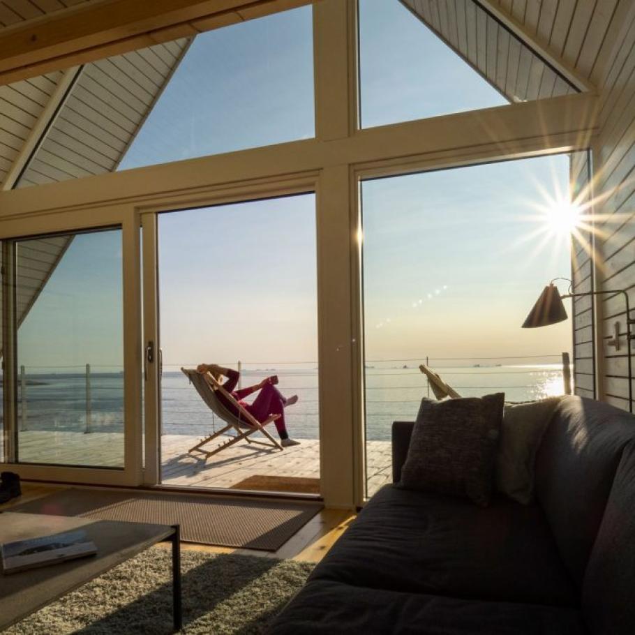 Le cabine di Ilimanaq Lodge sono straordinarie: si sviluppano su due livelli, con la zona notte al piano superiore. Al risveglio potrete scendere nel soggiorno, accomodarvi sul divano e osservare le piccole barche da pesca che attraversano lentamente le acque cristalline. Potrete sorseggiare un caffè sulla terrazza e magari salutare una balena che vi dà il buongiorno soffiando dall’acqua.