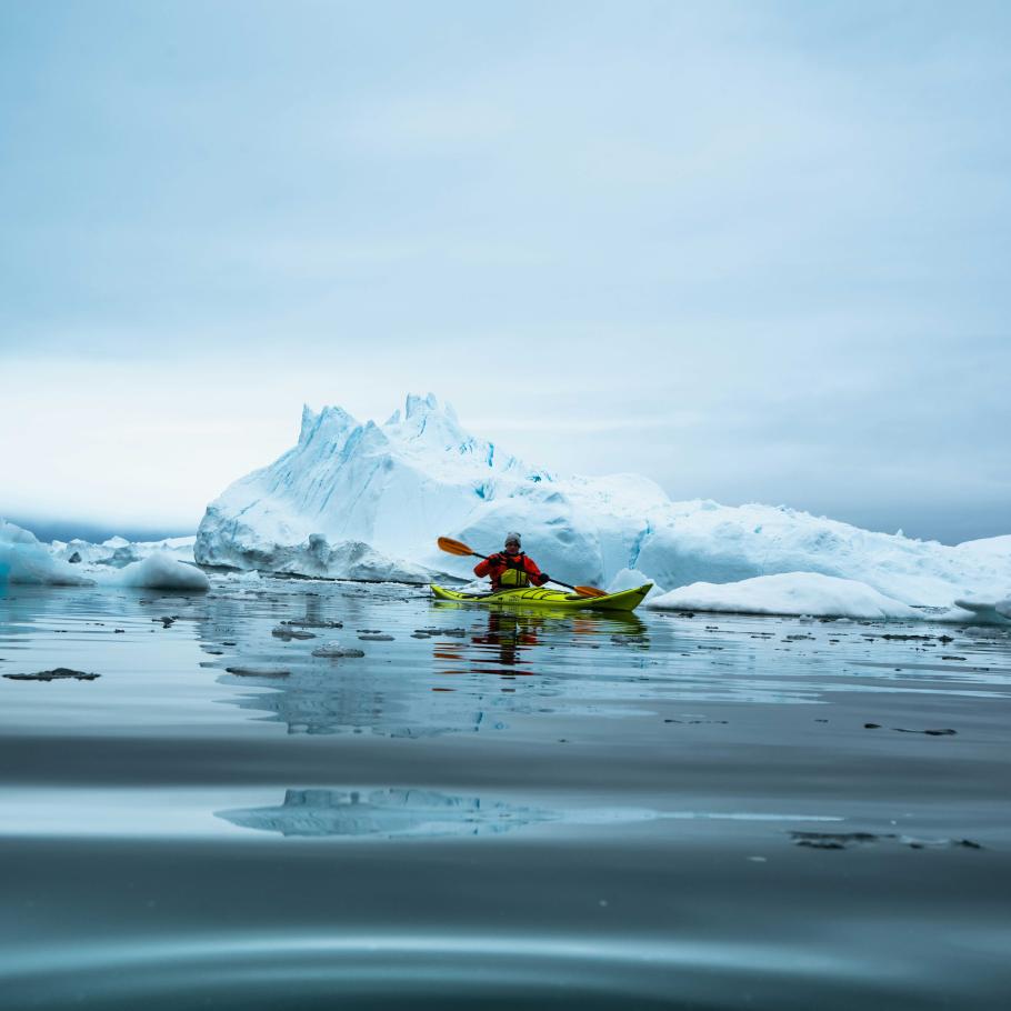 Gli Inuit navigano in kayak nelle acque della Groenlandia da più di mille anni, e ora potrete farlo anche voi. Mentre il kayak scivola silenziosamente sull’acqua, ammirerete i giganteschi iceberg che si ergono intorno a voi. Il sole di mezzanotte conferisce al ghiaccio una tonalità unica. Con il cielo nuvoloso, i meravigliosi colori blu degli iceberg saranno chiarissimi. Con un po’ di fortuna, potremo anche avvistare delle balene.