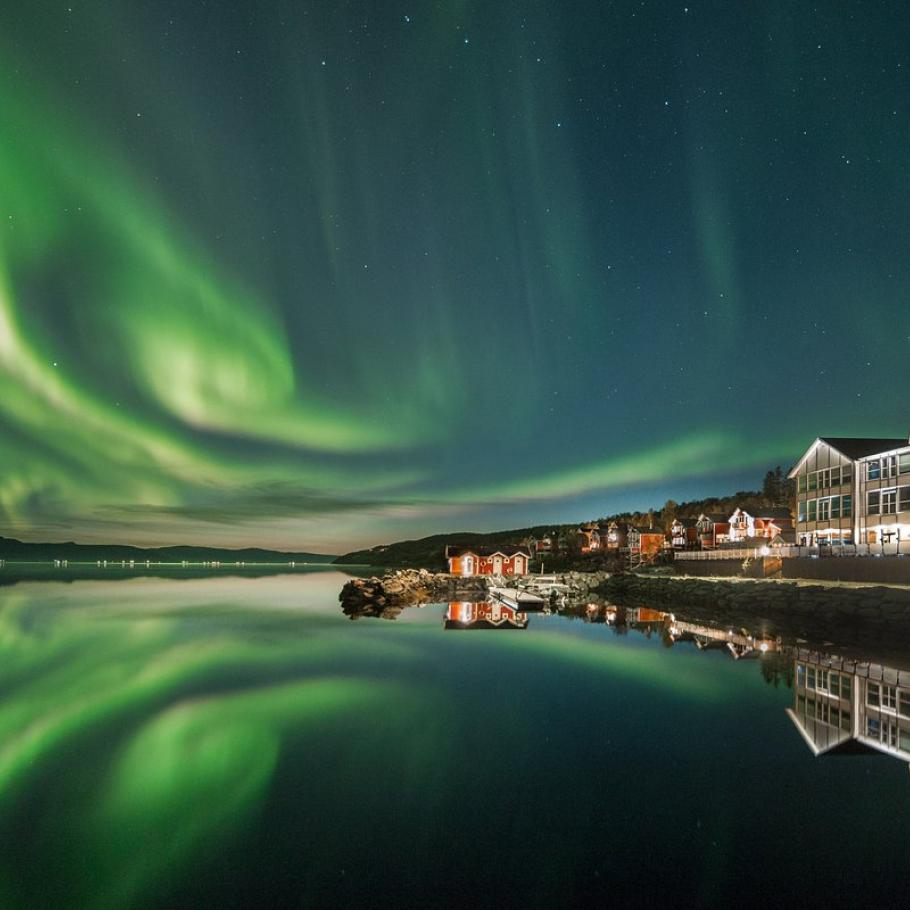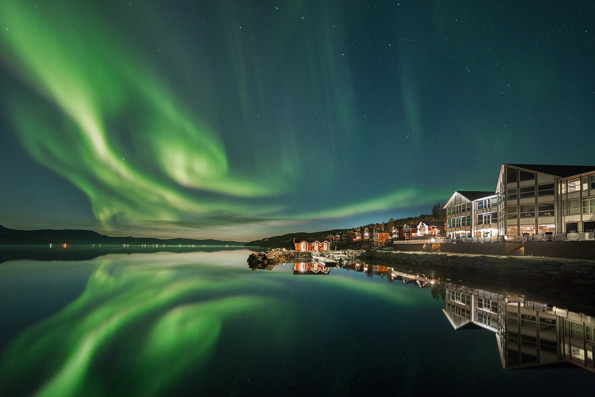 Il cuore del soggiorno sarà il magnifico Malangen Resort, immerso in un paesaggio spettacolare tra fiordo e montagne norvegesi.